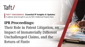 IPR Proceedings: Their Role in Patent Litigation, The Impact of Immaterially Different Unchallenged Claims, and The Return of Fintiv [Taft IP Webinar Series]