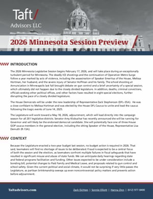 The 2026 Minnesota Legislative Session begins Feb. 17, 2026. Taft’s team provides a session preview here (or click on the image below).