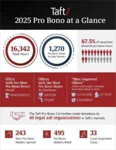 Click here (or the graphic below) for further details on Taft’s pro bono impact in 2025.