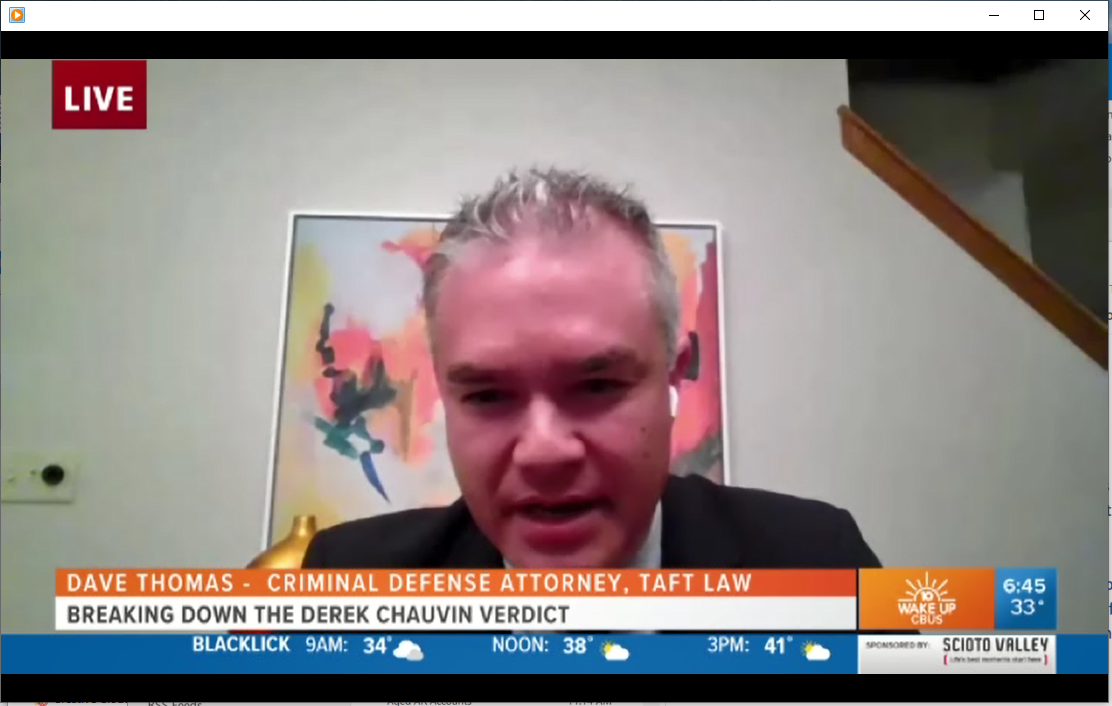 Taft Columbus partner David Thomas was interviewed by WBNS-TV on April 21. Thomas provided his thoughts regarding the Derek Chauvin verdict, following Chauvin’s trial for the murder of George Floyd. Thomas commented on what likely went into the jury’s deliberations and Minnesota’s sentencing guidelines.